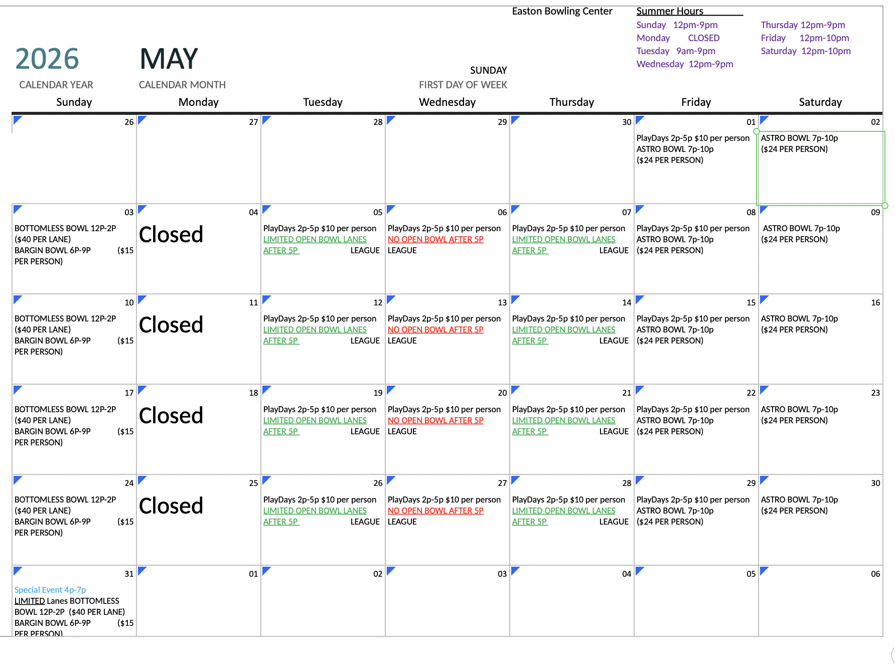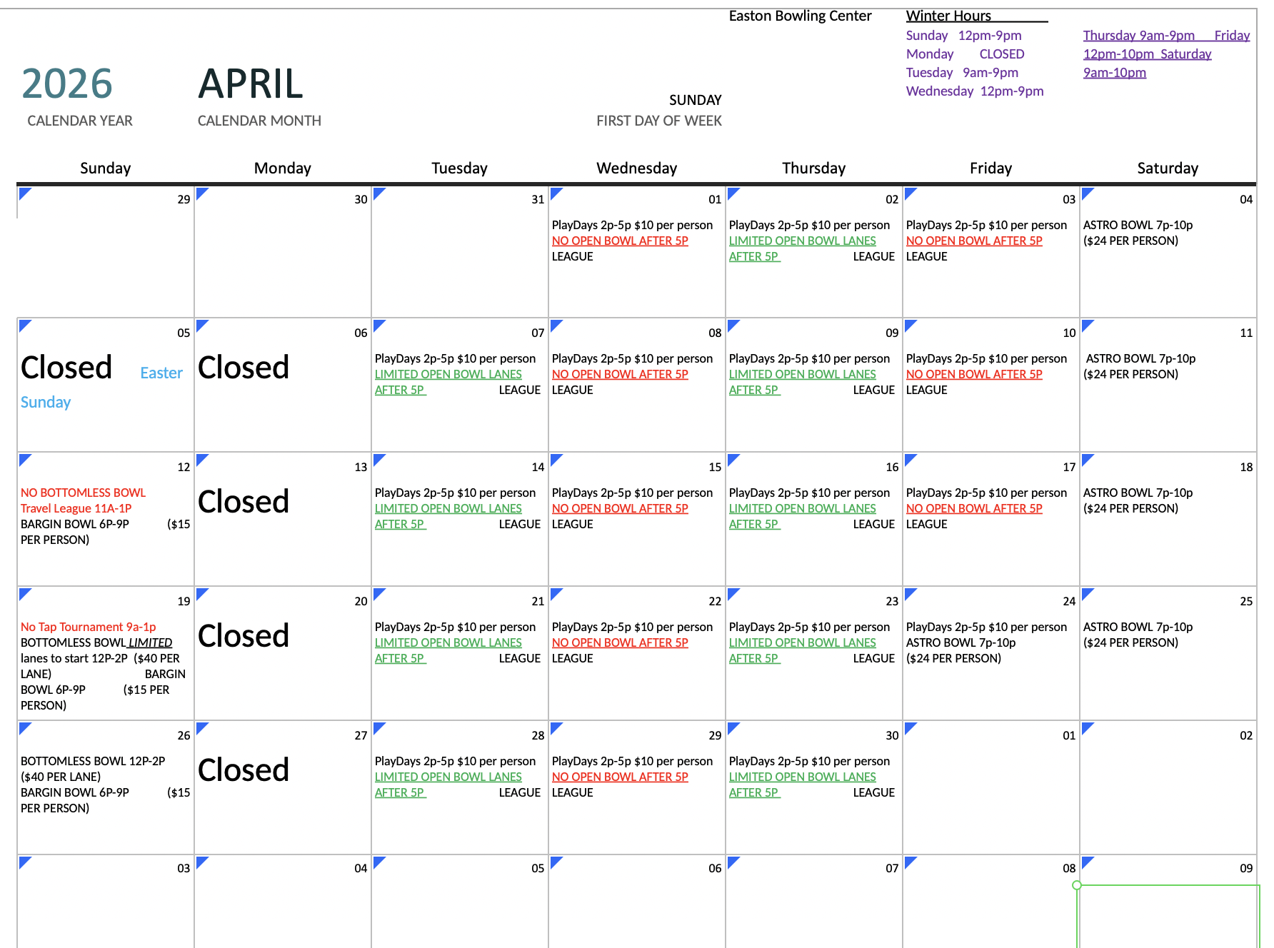 We will have no open lanes on Wednesdays and Fridays after 5pm (until April 24th). Please join us another time!